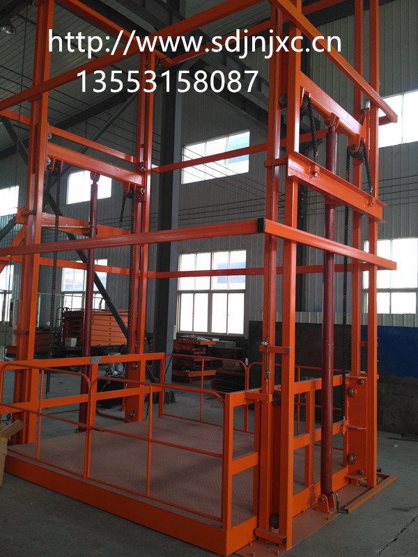 導(dǎo)軌式液壓升降平臺是一種非剪叉式液壓升降平臺,廣泛應(yīng)用于工礦企業(yè)代替電梯提升貨物,具有結(jié)構(gòu)簡單、載重量大、使用壽命長、維護(hù)方便、安全使用等特點(diǎn)。尤其適用于帶井道地下無法挖地基的場所。